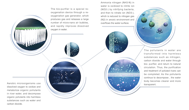 Биоочиститель обладает способностью непрерывного переваривания загрязняющих веществ воды, постепенного улучшения качества воды и улучшения способности самоочищения воды.